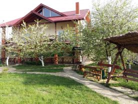 Мы отдыхали с семьей на выходных. Скажу сразу, что после отдыха остались только положительные эмоции! Дом новый, только построенный. Вообщем фотографии соответствуют действительности. У нас с балкона открывался вид на речку, берег речки чистый, спуск безопасный. Для любителей бильярда на 3-м этаже дома стоит новенький стол. Не могу ничего не сказать по поводу питания. Мы брали 3-х разовое. Еда домашняя, очень вкусная. Мы отдыхали не в одном гостевом комплексе и по сравнению с той едой ( как в столовой) эта явно выигрывает. Вообщем все остались довольны, еще не раз посетим этот гостевой комплекс! Сергей и Алла (г.Днепропетровск)