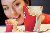 В ресторанах быстрого питания KFC в Великобритании начали подавать кофе в съедобных стаканах. Об этом сообщает The Daily Mirror. Новая посуда изготовлена из уникального печенья, которое оборачивается в сахарную бумагу, а затем покрывается слоем термостойкого белого шоколада, на который нанесен логотип компании.